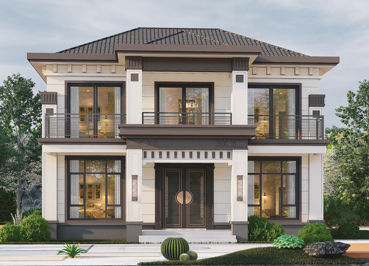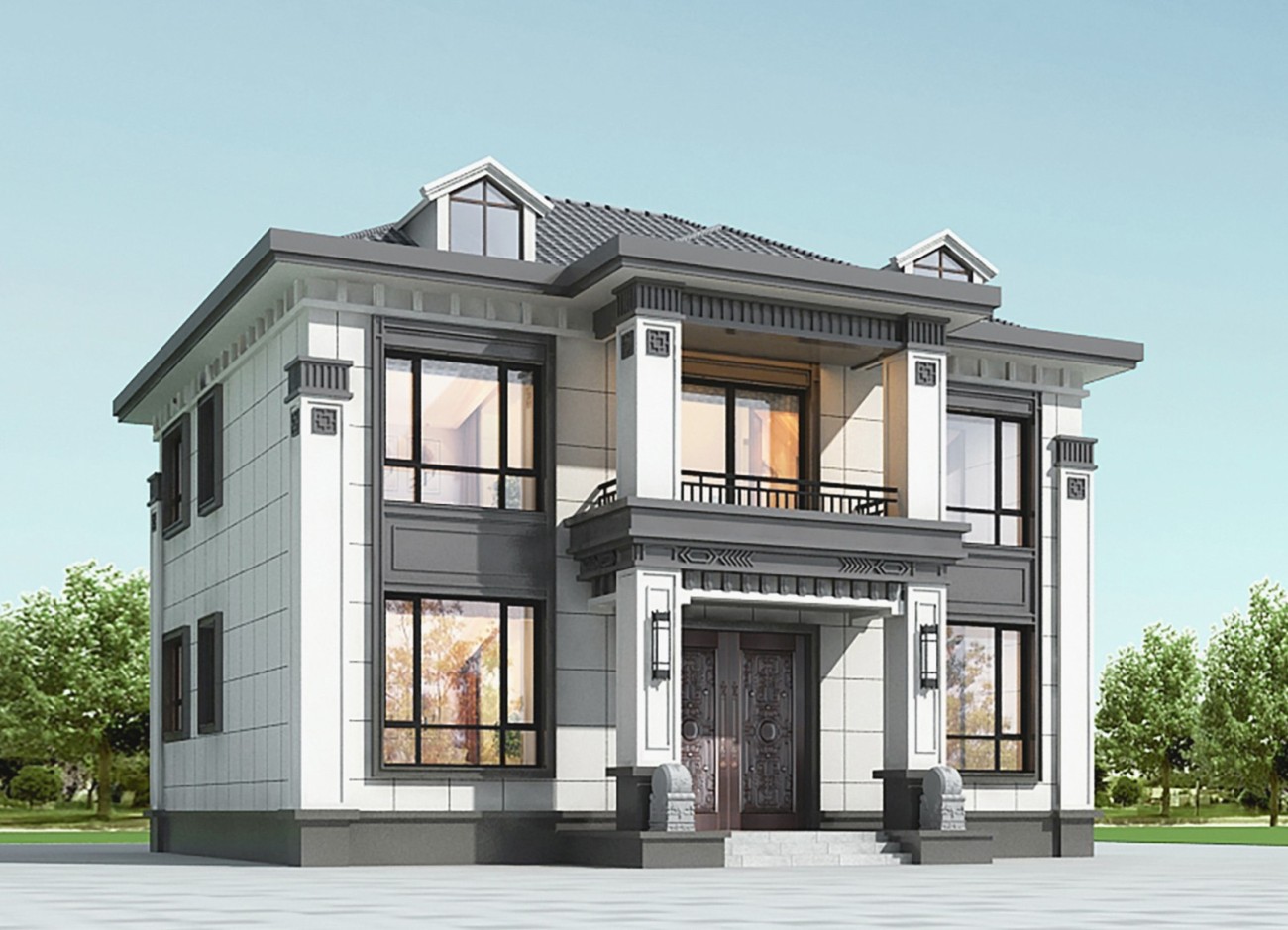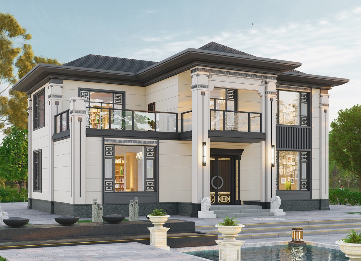 洪雅011 两层新中式(15.43x12.66米)-【易设计】